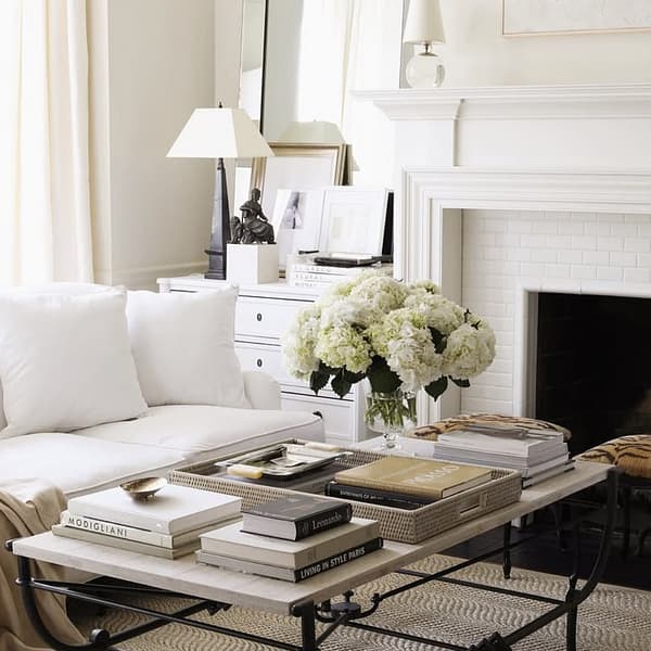 - Complementary Furniture: Consider wooden or natural fiber furniture pieces, like a coffee table or side tables, to enhance the botanical theme. I have chosen a sisal rug to add a natural element to this room.