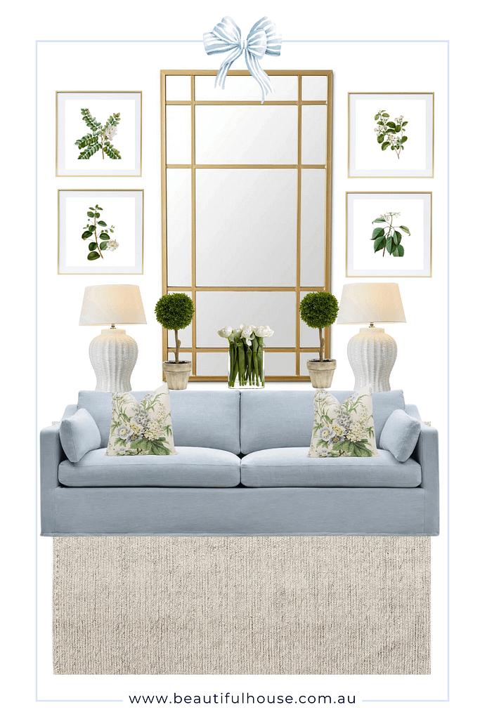 - Statement Piece: Alternatively, use one large botanical print as a focal point above the sofa or a large mirror to reflect light in a room. This can serve as a dramatic centerpiece.